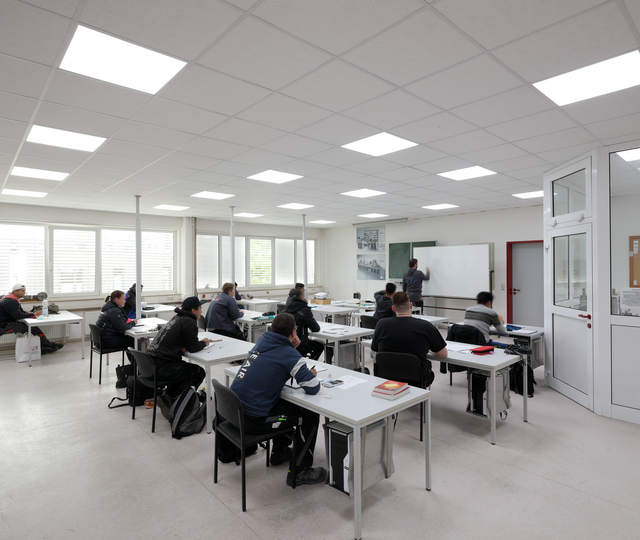 Afin d’améliorer sensiblement la concentration et les performances des élèves et de permettre une vision optimale sans éblouissement, trois salles de classe ont été équipées de la technologie d’éclairage HCL. Le démontage de l’installation existante en tubes fluorescents T8 et la mise en œuvre du nouveau système BIOLUX HCL devaient être réalisés sous forme de projet par les élèves du département électrotechnique, sous la supervision de leur professeur d’électricité.