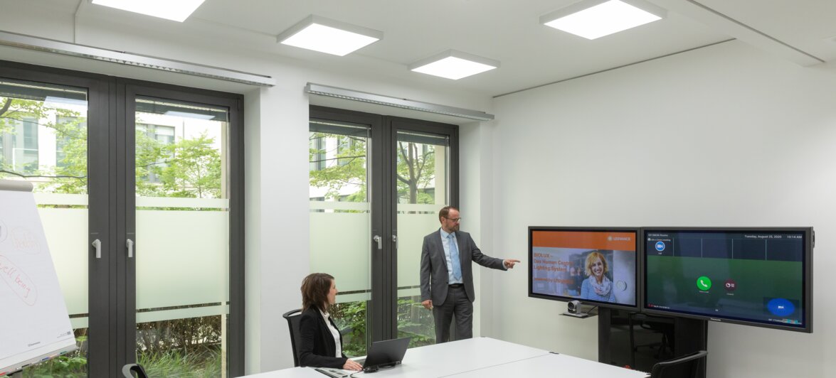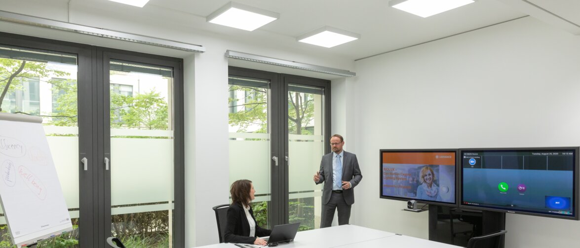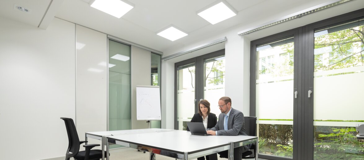 Det kraftfulla BIOLUX HCL-systemet från LEDVANCE med en intuitivt manövrerad kontrollenhet förbättrar belysningskvaliteten och ger en flexibel användning av kontoren i München för ett ledande globalt managementkonsultföretag. Fem olika belysningslägen ger perfekta förhållanden, både för dagligt kontorsarbete och för möten och presentationer.